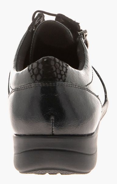 Полуботинок снабжен несколько большей чем обычно уплотненной задней частью, сформированной из термопласта. Она позволяет надежно фиксировать пяточную область в естественном положении, к тому же задник держит форму достаточно долгое время. Изнутри ботинки достаточно широки, а вставка из трикотажа отлично растягивается, что позволяет добавить в обувь орто-стельку, индивидуально изготовленную.
